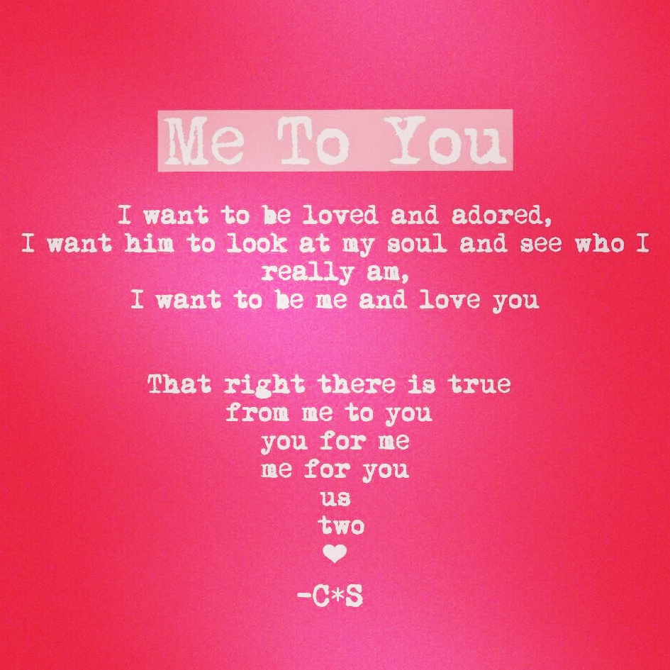 Me to you. He never looked deep into my soul. I was open. I was always ready, but he never saw who I really was. It’s sad because there is such strong emotions between us, but he still never looked into my whole soul.