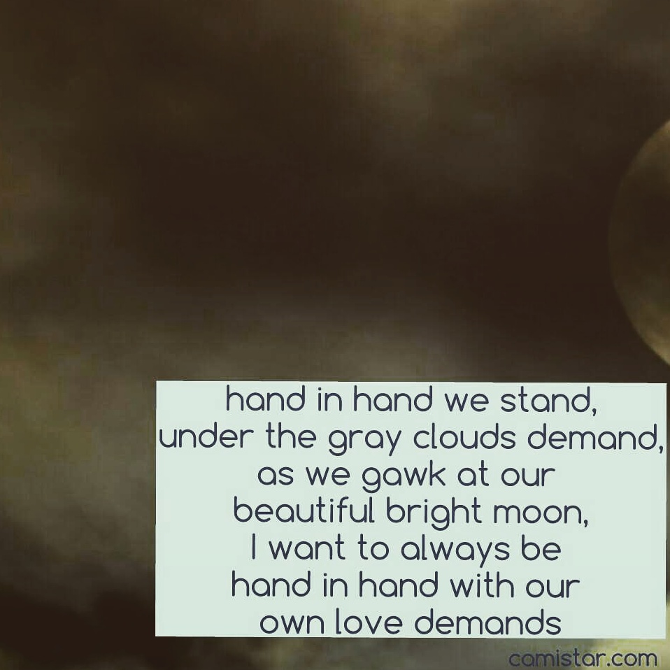 He may not realize the nightly love I have for him, under that moon as we stand, I embraced that beautiful moment hand in hand.